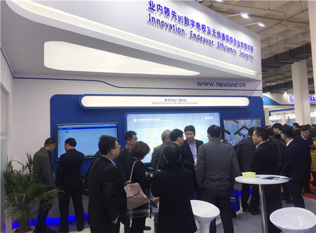 本屆展會(huì)我司加強(qiáng)應(yīng)用發(fā)光材質(zhì)以突顯極具視覺(jué)沖擊力及科技感的展臺(tái)外形,一開(kāi)展就吸引了大量觀眾駐足,成為本屆CCBN不可忽視的亮點(diǎn)。在外觀上花巧思的同時(shí),新大陸通信展臺(tái)還精心規(guī)劃了五大展區(qū),分別為三網(wǎng)融合智能終端區(qū)、數(shù)字應(yīng)急廣播系統(tǒng)區(qū)、700M無(wú)線廣播寬帶網(wǎng)解決方案區(qū)、無(wú)線廣播覆蓋解決方案區(qū)以及海外終端產(chǎn)品區(qū)。除在三網(wǎng)融合終端展區(qū),推出的最新VR、高端游戲等融合型終端吸引了眾多觀眾和行業(yè)客戶體驗(yàn)外,更為突出的是我司自主研發(fā)的擁有多種組網(wǎng)方式的數(shù)字應(yīng)急廣播系統(tǒng)展區(qū)及應(yīng)用于新一代廣播電視數(shù)據(jù)網(wǎng)的700M無(wú)線寬帶網(wǎng)解決方案展區(qū),這些緊密?chē)@2017年廣電發(fā)展重點(diǎn)的主推展品,吸引了大量客戶及廣電運(yùn)營(yíng)商的參觀咨詢(xún)。