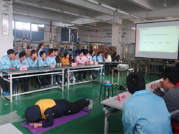 ??? 第一環(huán)節(jié),各隊(duì)三名參賽選手配合答題,一名負(fù)責(zé)做平板支撐,其堅(jiān)持的時(shí)長(zhǎng)即為另外兩名伙伴的答題時(shí)長(zhǎng)。各小組做平板支撐的伙伴贏得了現(xiàn)場(chǎng)觀眾的熱烈掌聲歡呼支持,而大家也不負(fù)眾望的全部為小組爭(zhēng)取到了規(guī)則上限的兩分鐘答題時(shí)間。一輪過(guò)后,各組可謂是平分秋色,難分勝負(fù)。