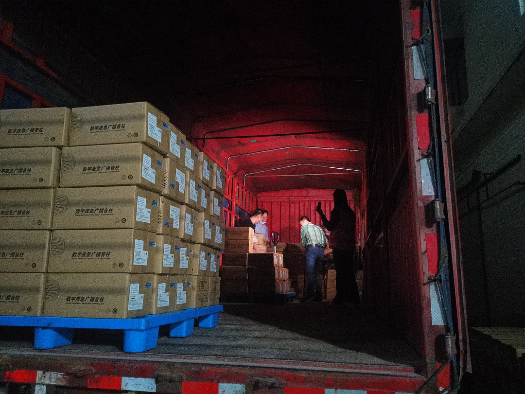 ????支援期間,為湖北疫區(qū)防疫宣傳,連夜發(fā)貨1000臺音柱和100臺播控器,在人力不足的情況下,自發(fā)組建搬運團隊通宵完成發(fā)貨工作,為國家抗擊疫情貢獻一份力量。