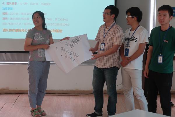 ????此次課程我們邀請到了綜管部高級(jí)經(jīng)理陳娜進(jìn)行分享,陳老師熱情洋溢、充滿激情的工作作風(fēng)深受廣大同仁認(rèn)可,而其授課風(fēng)格也是幽默風(fēng)趣,整場學(xué)習(xí)氣氛十分活躍!課程開始,為讓大家的互動(dòng)性更強(qiáng),陳老師將學(xué)員進(jìn)行了分組,并在課程中進(jìn)行PK,最后決出優(yōu)勝小組,大家的積極性瞬間得以提升。